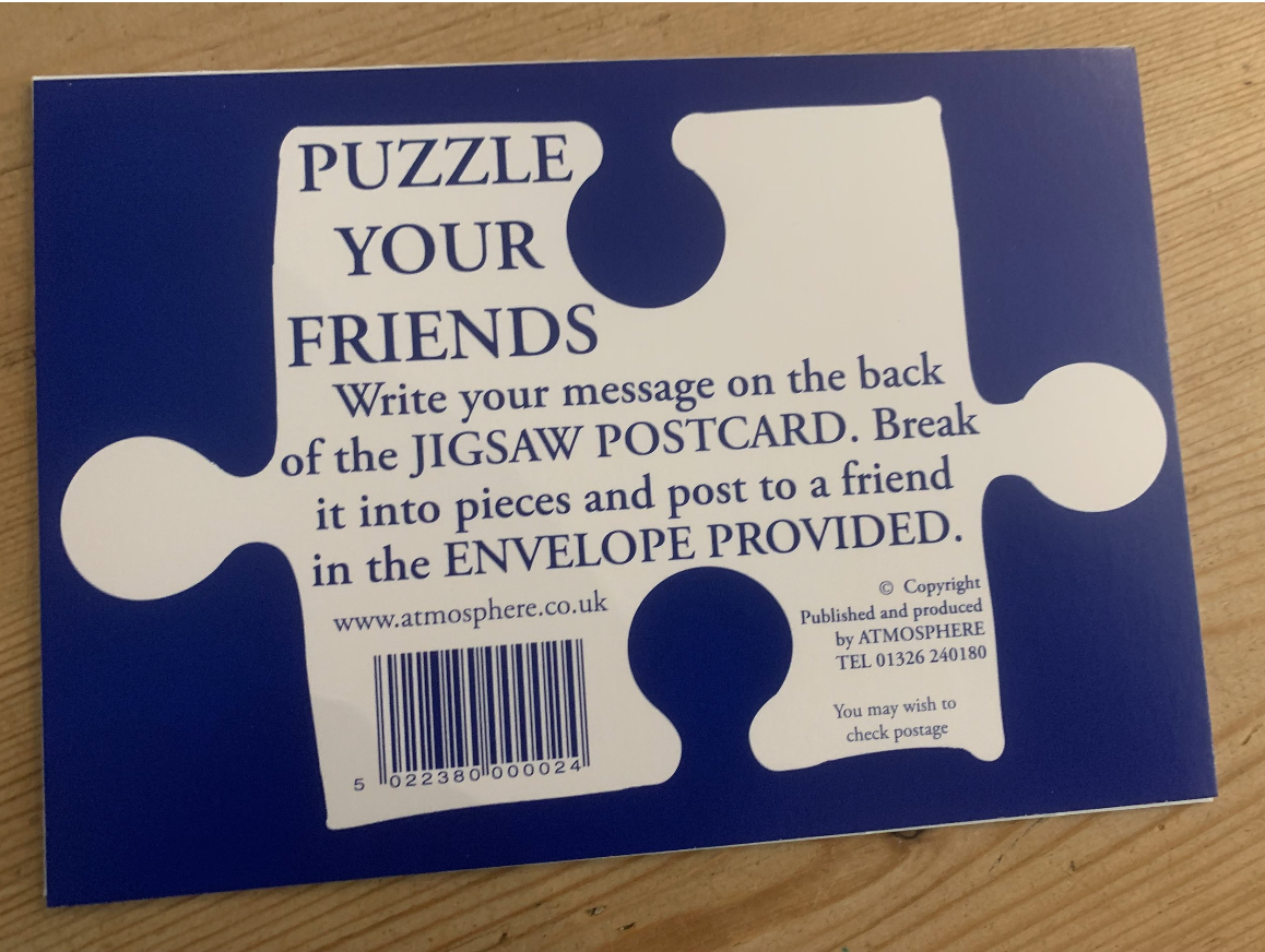 Puzzle your friends! Write your message on the back of this jigsaw puzzle postcard. Break it into pieces and post to a friend in the envelope provided.